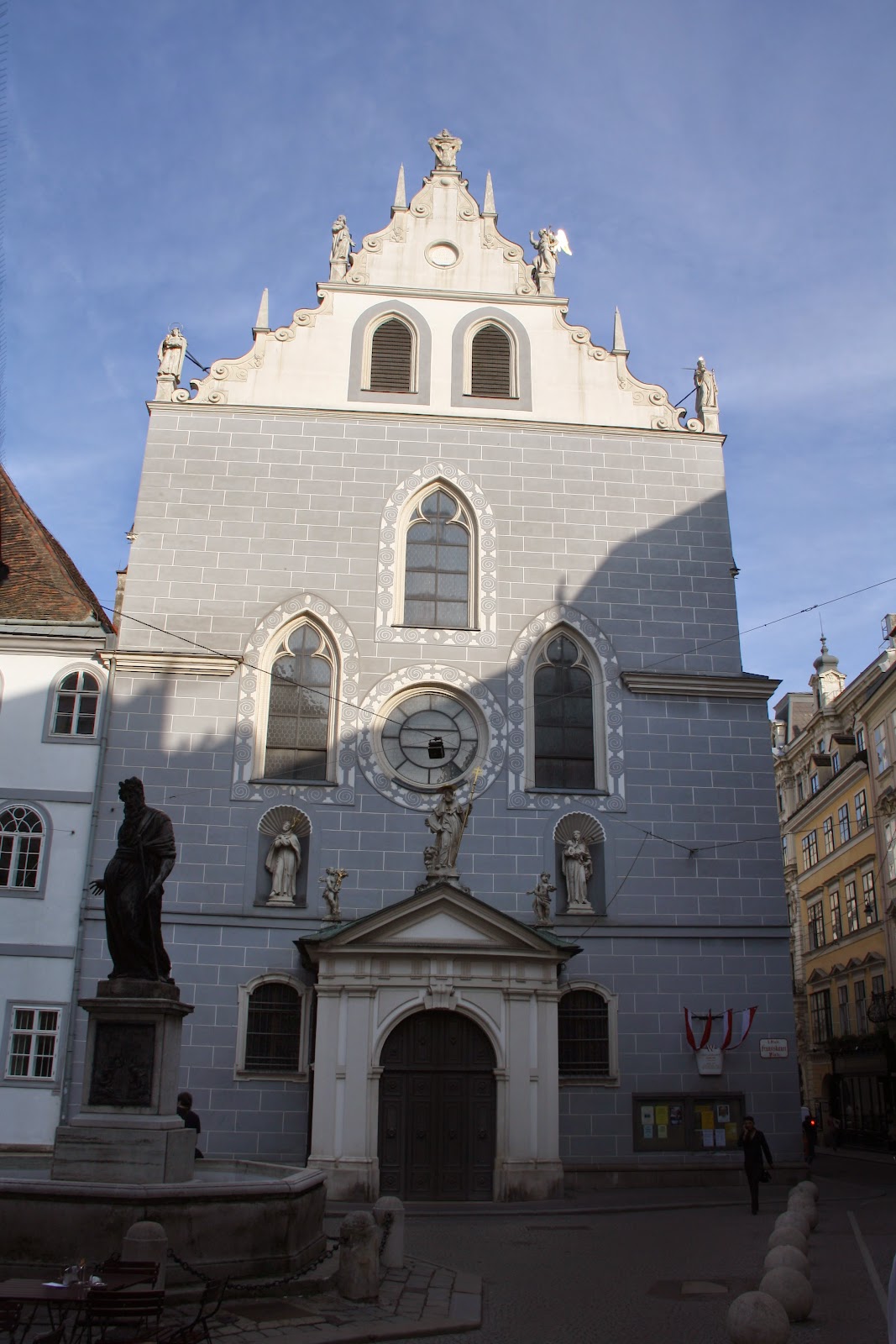 A végére pedig egy látszólagos kakukktujás: a reneszánsz Franziskanerkirche, gotizáló ablakokkal.
