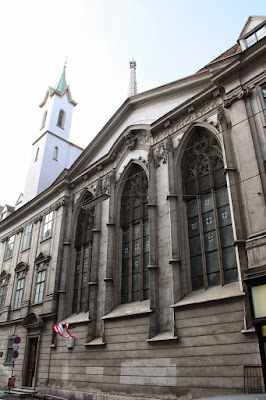 Ez szerintem Bécs legalulértékeltebb látnivalója. A Google-ön egyetlen képet találtam róla, azt is egy esküvői oldalon. Nagyon motiváltnak kell lenni, hogy megnézzük: én a biztonsági őrt kértem meg, hogy mutassa meg, mert bár az épület nyitva van, semmi információ nincs a kápolnáról, ami amúgyis zárva van.
